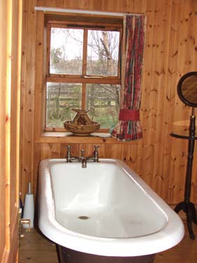 Bathroom with antique bath and separate instantaneous shower.